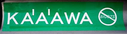 | I've gathered a few of my favorite Kaaawa photos taken during July. One of the photos shows the surveyors' stakes at one side of Kaaawa Beach Park, where new rest rooms are now under construction. The property line, as staked, is several feet from what has previously been recognized as the property line. That is, unfortunately, consistent with another case I know of a block inland of this location. If this is a more general problem, it sounds like something that could eventually make some lawyers real money. |