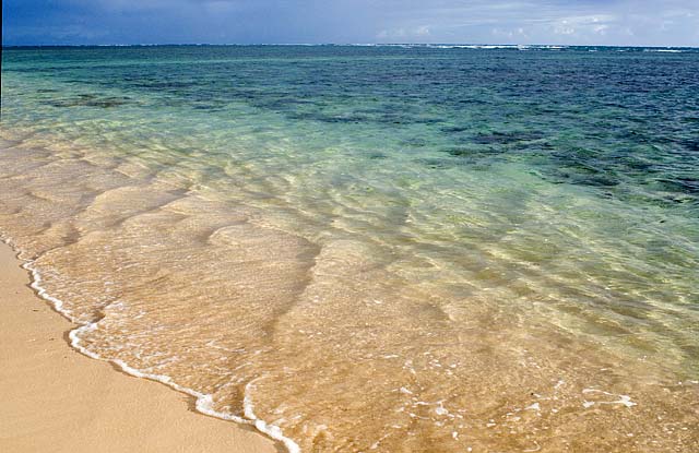 Clear water. On the beach just after dawn, Kaaawa, Hawaii. April 2007.