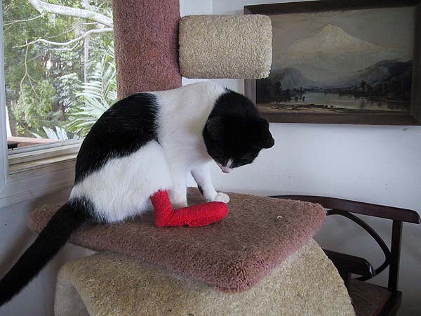 On the cat front, Ms. Lizzie's foot has a bit of that sewn-together Frankenstein look, but so far it's standing up to her fastidious cleaning regime. And Mr. Silverman relieved a bit more of our anxiety by showing up for dinner last night after being absent for 48-hours. In fact, he's back for breakfast right now as I write.