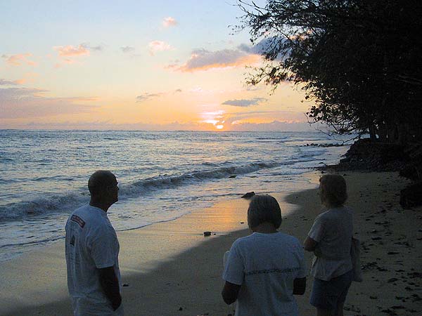 It's a wet, cold morning in Kaaawa. Cold, of course, means around 70 degrees. Wet enough to leave us sitting here waiting for the coffee instead of walking down to the beach. Occasionally, at least, good sense prevails.