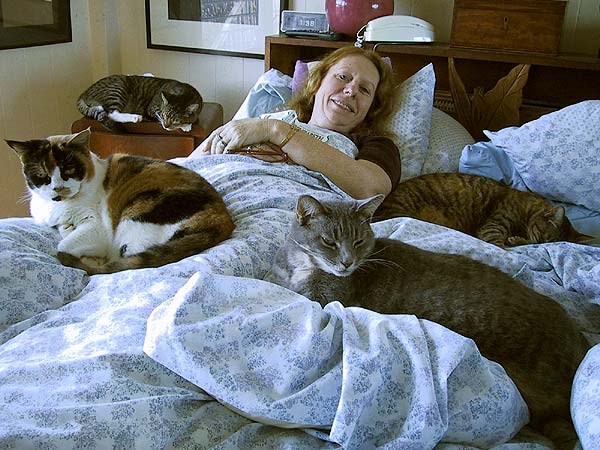 "I'd like to take a pellet gun to the brat who shot Silverman! I love this cat! I love his disposition. He is the coolest of cool cats. Healing vibes coming his way. Give Silverman a chuck under the chin for me."And I did. And a reminder--if you've forgotten how cool Silverman really is, notice that he's got his own photo gallery listed up at the top of the page. Check it out.