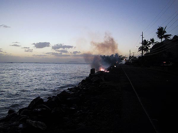 Happy New Year! It's got to be happier than this one, which certainly has not been a banner year globally, locally, or personally. And if the new year ultimately proves to be no better, well, best to get the celebrating in up front while there's still hope.I don't know what it was like on the rest of Oahu, but it feels like we survived another hurricane here in Kaaawa. Extremely strong winds blasted us from around 1 AM to nearly 5 AM, with gusts that felt like they were going to lift the house. I had to repeatedly go through the house and block doors to keep them from blasting shut when the gusts came through, so I've got chairs and other heavy things dragged into all the doorways. I haven't yet been outside to check for yard damage.