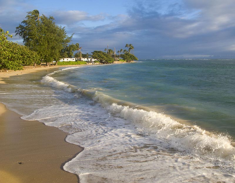 [text]As usual, we walked to the end of the beach on the other side of Kaaawa yesterday morning, then turned around and headed back towards home. We were walking with Ms. Amedine, one of our regular morning dogs, and her people. I was surprised when the light changed and the early morning colors were replaced by the full colors of daylight. Luckily, I had a camera ready at the right time. Don’t forget to click on the photo for a larger version.