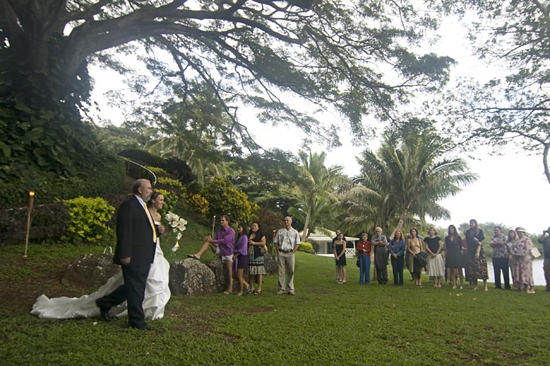 We were watching the weather yesterday with increasing anxiety because we were due at a mid-afternoon wedding of one of Meda’s former students just around the bend at Moli’i Gardens, part of Kualoa Ranch. The site is near the border between the ahupua’a of Kualoa and Hakipu’u, one of the wetter parts of the island. But the weather cleared and the wedding proceeded without any visible glitches.