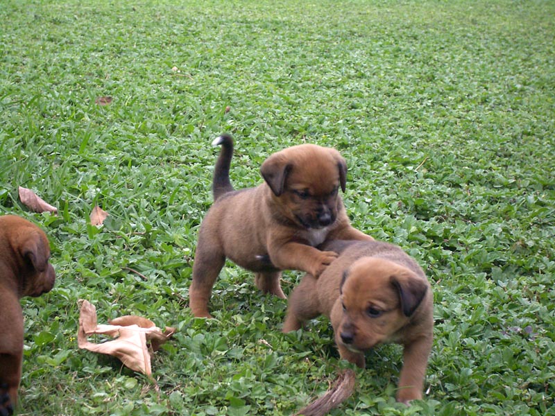 The eight puppies of Ms. Pe’a are five weeks old and are looking for good homes. They live just around the corner from us in Kaaawa.