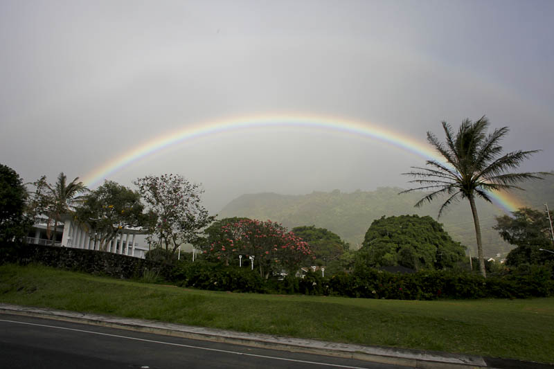 [text]We were heading up into Nuuanu on Pali Highway late yesterday afternoon and were greeted by an incredible rainbow. It was just starting to get dark, at least down at highway level, while the sunlight was still hitting the sides of the valley. And the rainbow.