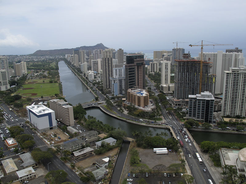 This is the view looking across Waikiki towards Diamond Head from the building, which is across the street from the convention center. That’s the Ala Wai Canal running up the center of the photo.