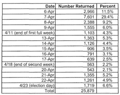 According to a chart in the final report on the District III special election, half of all ballots cast were received in the first three days.