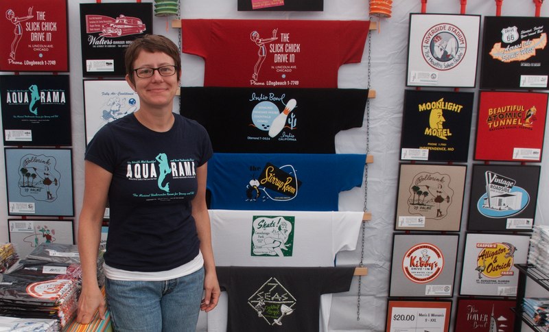 My “find” of the day was the “Vintage Roadside” booth in the “overflow” area outside in the parking lot, where I met Kelly Burg and Jeff Kunkle. They’ve turned curiosity about places into a career as roadside historians and cultural collectors, part of which involves collecting visuals, the classic signs from now-defunct roadside businesses from the 1930s through the 1960s.