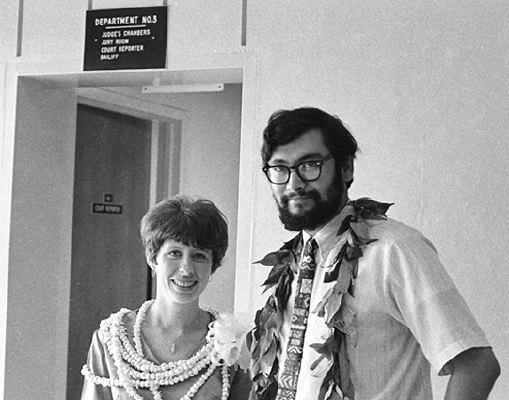 And here we are, just a few years ago, outside Jude Sidney Feinberg’s chambers in the Santa Clara County Municipal Court, on August 15, 1969. A romantic spot, no?