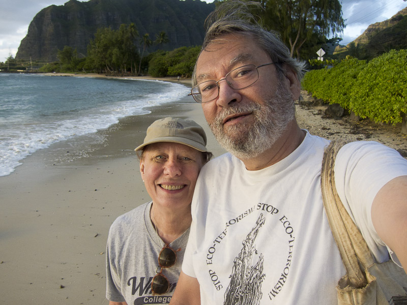 So here’s Ian & Meda this morning on our walk along the beach in Kaaawa.