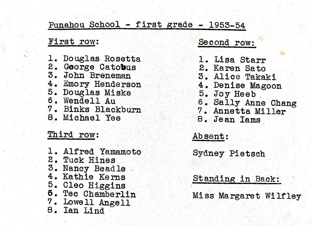 I recently posted the class photo from my kindergarten class at Punahou School back in the early 1950s.