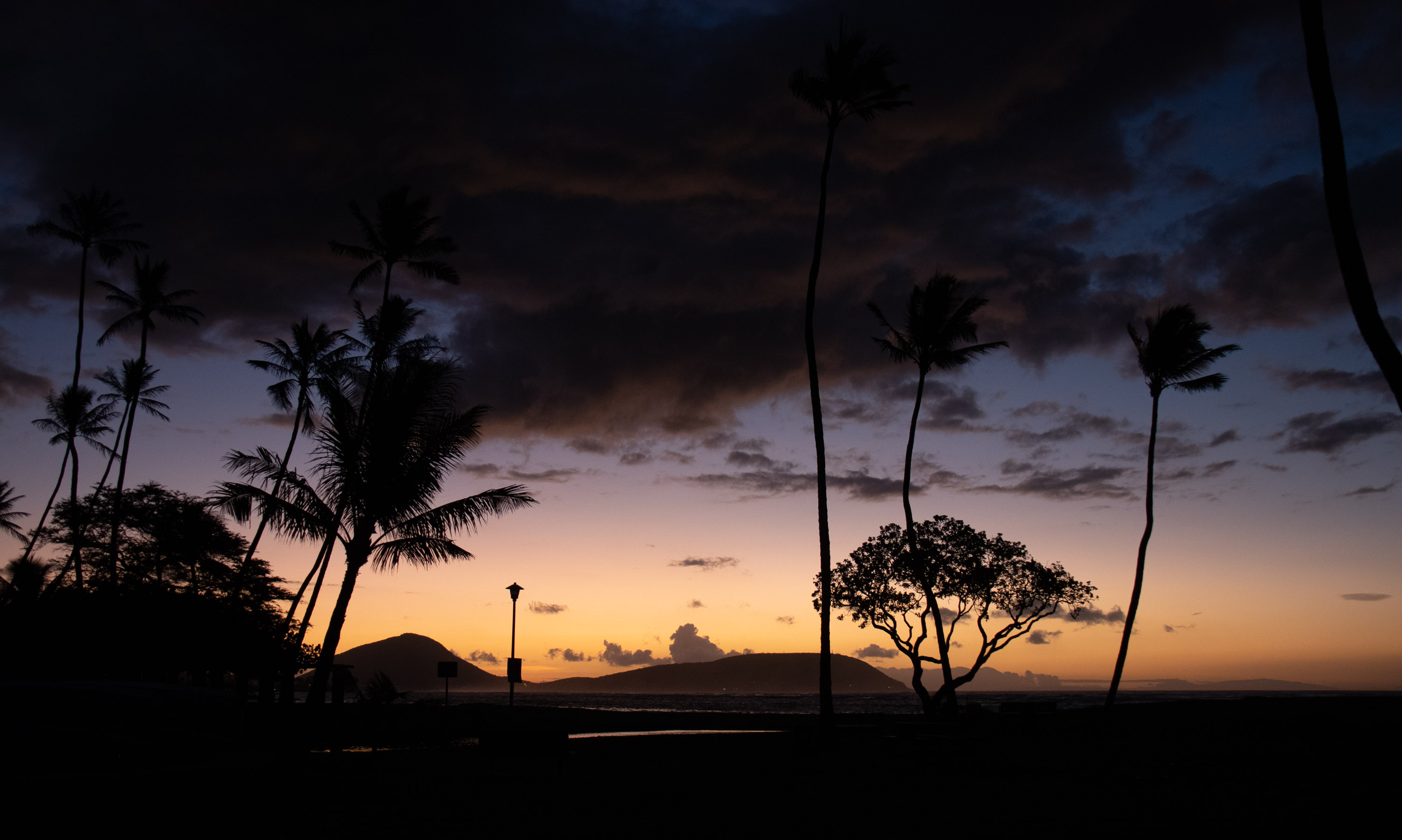 Today started out as one of “those” days. It was still dark when we left the house to walk down to the beach, but the colorful glow already visible announced the sunrise to follow. So we picked up our pace in order to (hopefully) get to the park in time to get a picture of the morning’s colors.