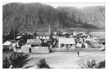 At sometime probably in the 1880’s, a person reported to the authorities of the Board of Health that Heleualani had a suspicious spot on her face. Everyone was concerned about leprosy (now called Hansen’s Disease) which had been brought to Hawaii from China and had spread. In an effort to control it, all suspects with skin conditions indicating a possible infection were banished to an isolated center at Kalaupapa, Molokai. Naturally, there was a big commotion in the family and they hid Heleualani away while the kupuna went to Honolulu to a gathering of the relatives at the home of Kaawalauole on Jack Lane to discuss what they should do. The final decision was that she should surrender for examination and in the event she should have to go to Kalaupapa, her husband and two young sons would accompany her as kokua. It is said that all four of them died at Kalaupapa. I once tried to obtain information from the Department of Health, but was given so many excuses that I finally gave up.