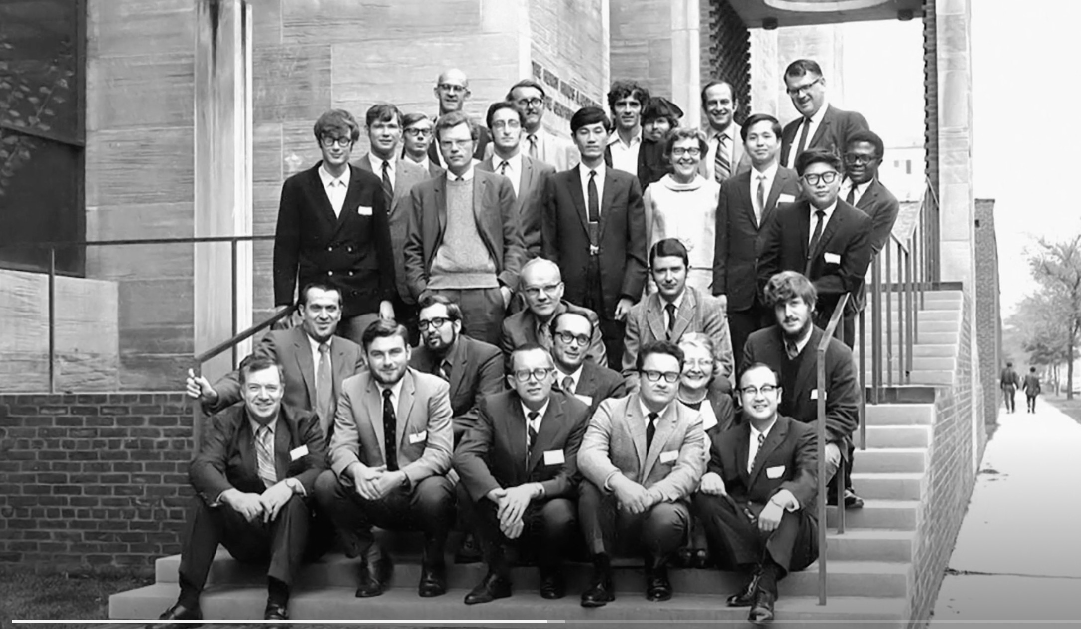 ~ 25 minutes into the show a black and white group photo appears . It was a regional tornado researcher meeting at University of Chicago ( ~ 1971). It was a regional tornado researcher meeting at University of Chicago ( ~ 1971).