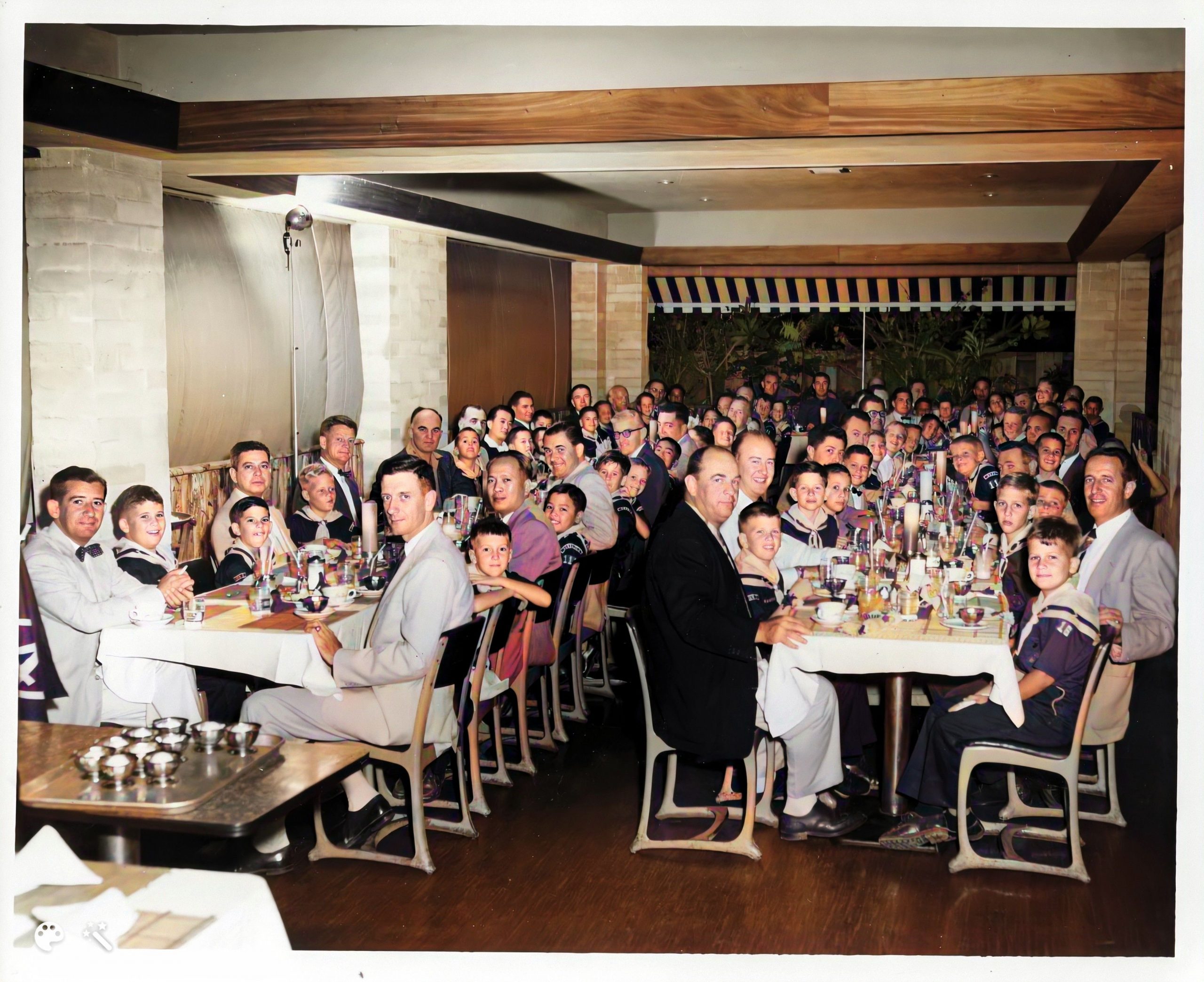 I know I’ve posted the black & white version of this photo at some point in the distant past. It’s a father-son dinner event of newly formed Cub Scout Pack 16 at Kahala School in February 1956.