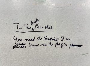 The card reprints William’s hand-written note found late in his copy of a 1995 zen reader by Nelson Foster and Jack Shoemaker.