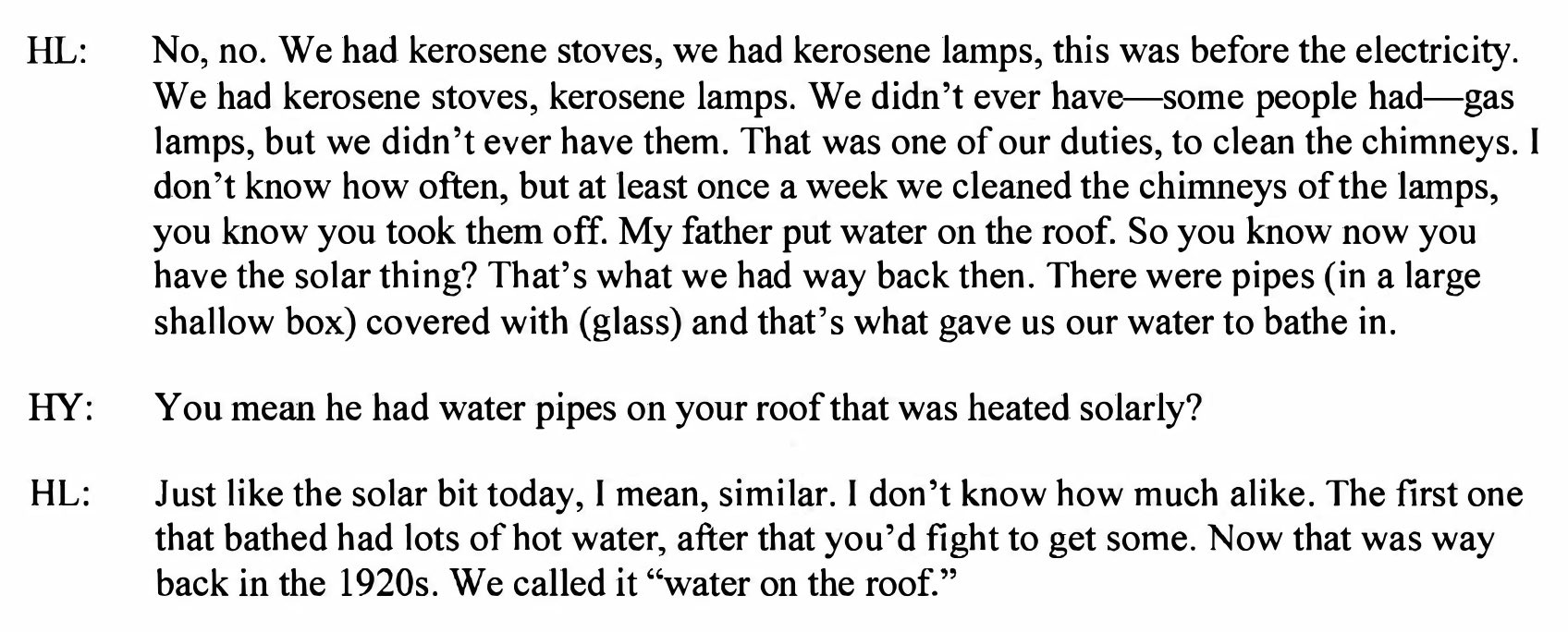Mahalo for sharing this, Ian. It harkens back to a time when Hawaii was largely self-sufficient and consumed very little hydrocarbon energy–exactly the goal of today. Interestingly (at least to me), the closest we ever got to this very low-consumption, self-sufficient lifestyle was the Counterculture “back to the land” era. I hauled water from the Kohala Ditch in North Kohala in 5-gallon buckets to a garden in the 1970s, and we had the “hippie” equivalent of your Mom’s family’s solar water heater–a long coiled black hose on the roof. Dexter Cate had told me about a roofing sealant which we used on the plywood roofing of our shack. I believe he used it on his leaky WW2-era Quonset home in Manoa.