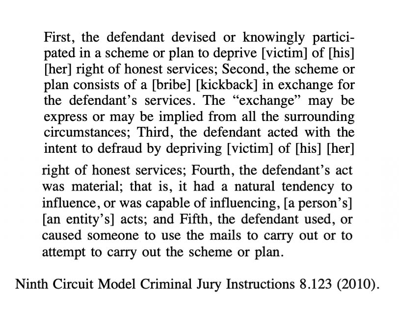 And the maximum penalty if convicted in federal court of “honest services wire fraud” is 20 years, along with a fine of up to $250,000 and three years supervised release following completion of the prison sentence.