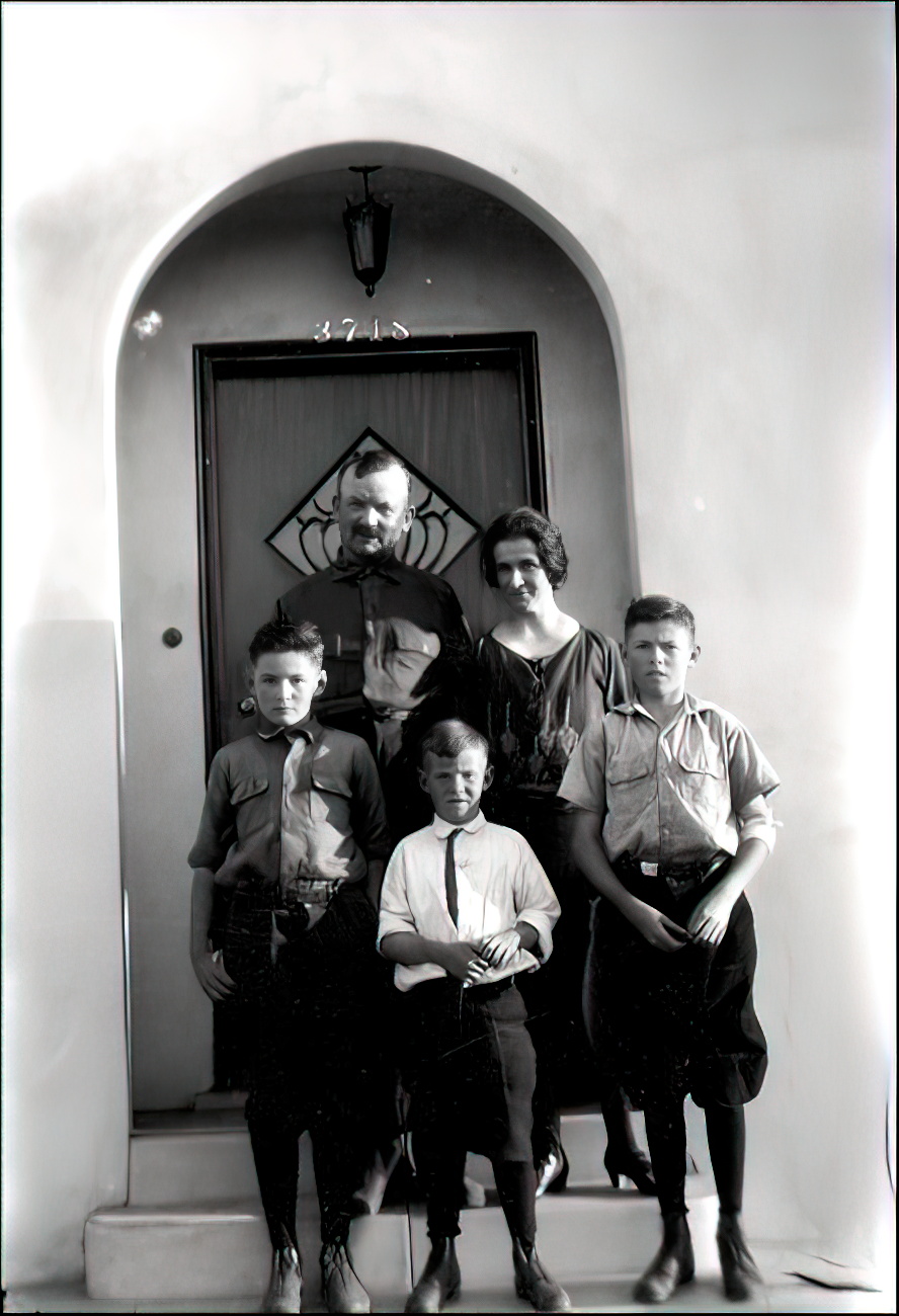 First photo, generations. This is my dad with his parents, on the steps of their small house at 3718 Vista Street in Long Beach, California. Checking it in Google, I see that it is now uses the address “E. Vista Street.” I don’t recall the street direction being used way back when I would send cards to my grandmother.