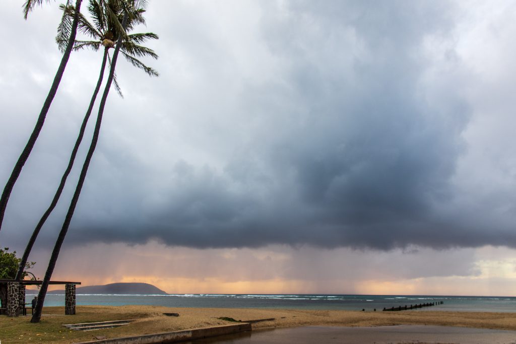 The rain out towards Molokai blew past, but it was followed by rain that disrupted our morning walk for ten minutes or so. But after that, the sun returned. It often happens like that in Hawaii, shifting between sun and rain in short order.