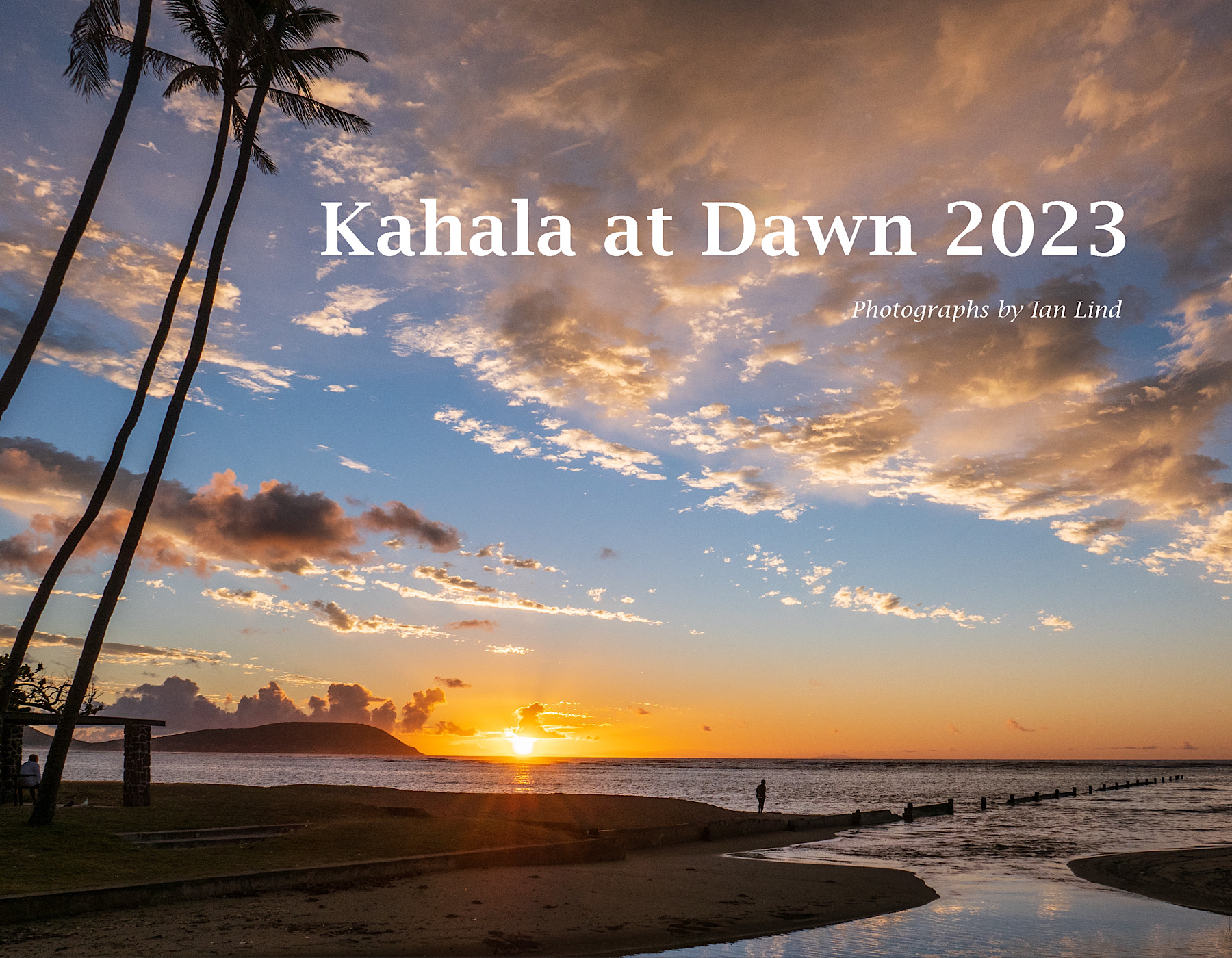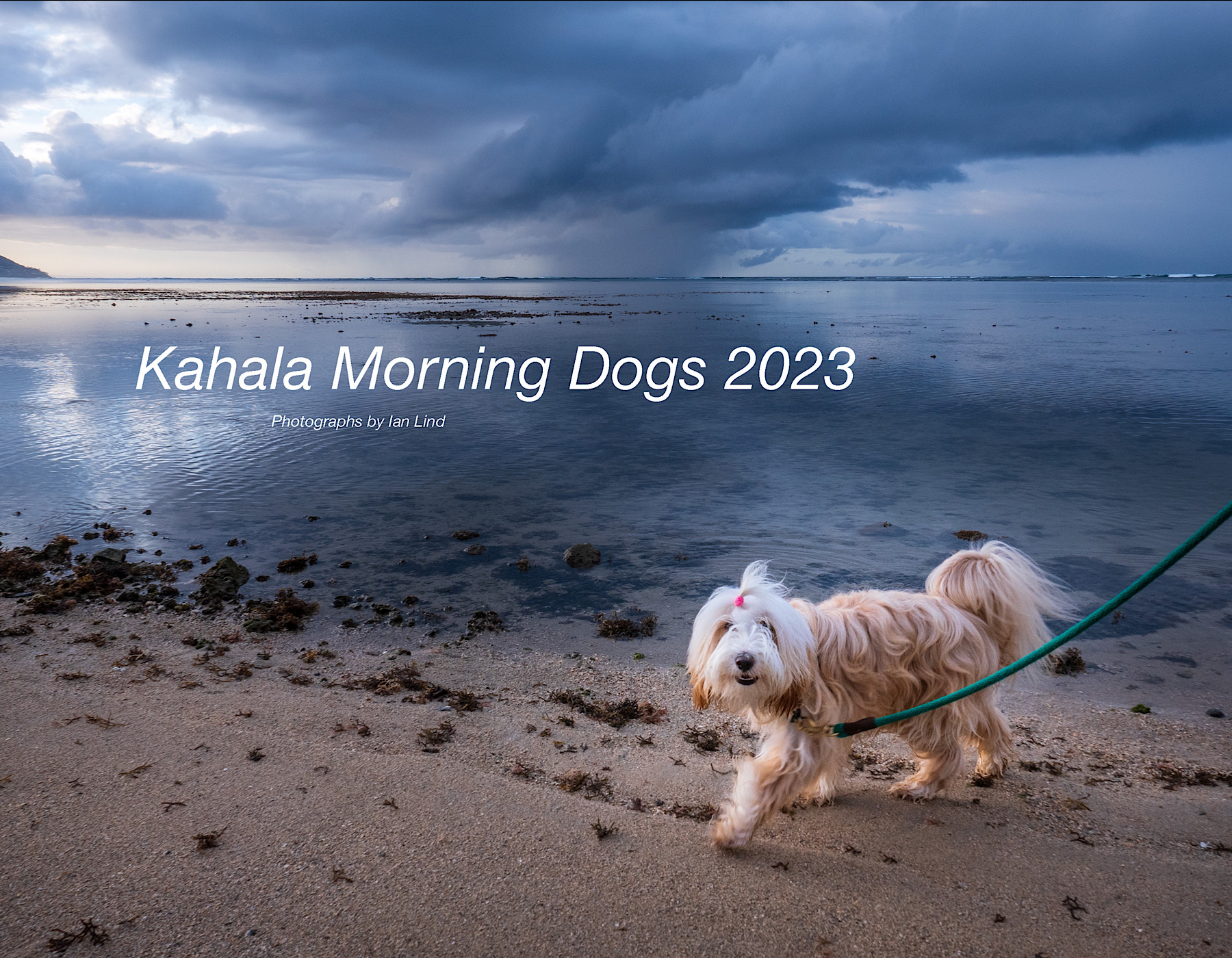 There are a precious few of you who have said that you look forward to the calendars that I make up each year. This year, my three annual calendar—Kahala Morning Dogs (our canine friends), Kahala at Dawn (sunrise photos), and Our Kahala Cats (featuring, well, you know)—had to be expanded to include a Kahala Morning Dogs v2, to accomodate the new dogs we’ve met this past year, as well as those we now see only irregularly.