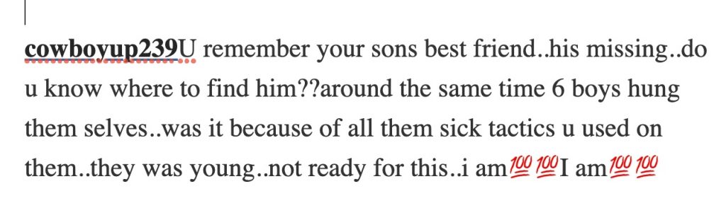 In one version of the suicide rumor, threats of violence by members of the 44 if debts weren’t paid drove the victims to suicide. Another version says they killed the kids and staged the deaths to appear as suicides.