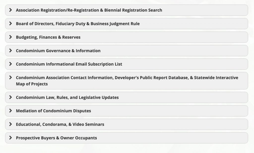 In any case, for those interested, the Real Estate Branch of the Department of Commerce and Consumer Affairs provides online links to “Resources For Condominium Owners, Boards Of Directors & Associations.