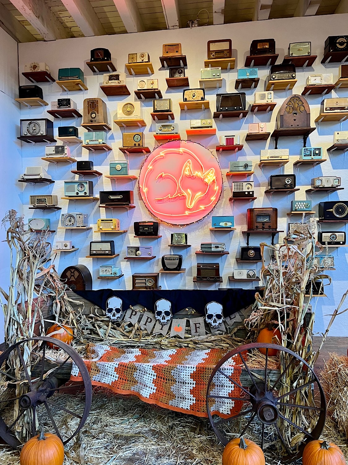My post here yesterday shared a photo of a wall of old radios. I was concentrating on the radios themselves, and cropped the photo accordingly.