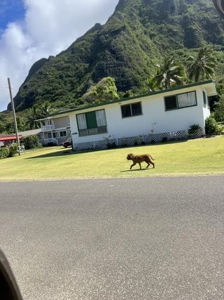 **He has a daily routine from Kaaawa Elementary to Kaaawa Fire Station. You may see him elsewhere but that’s random / less likely.