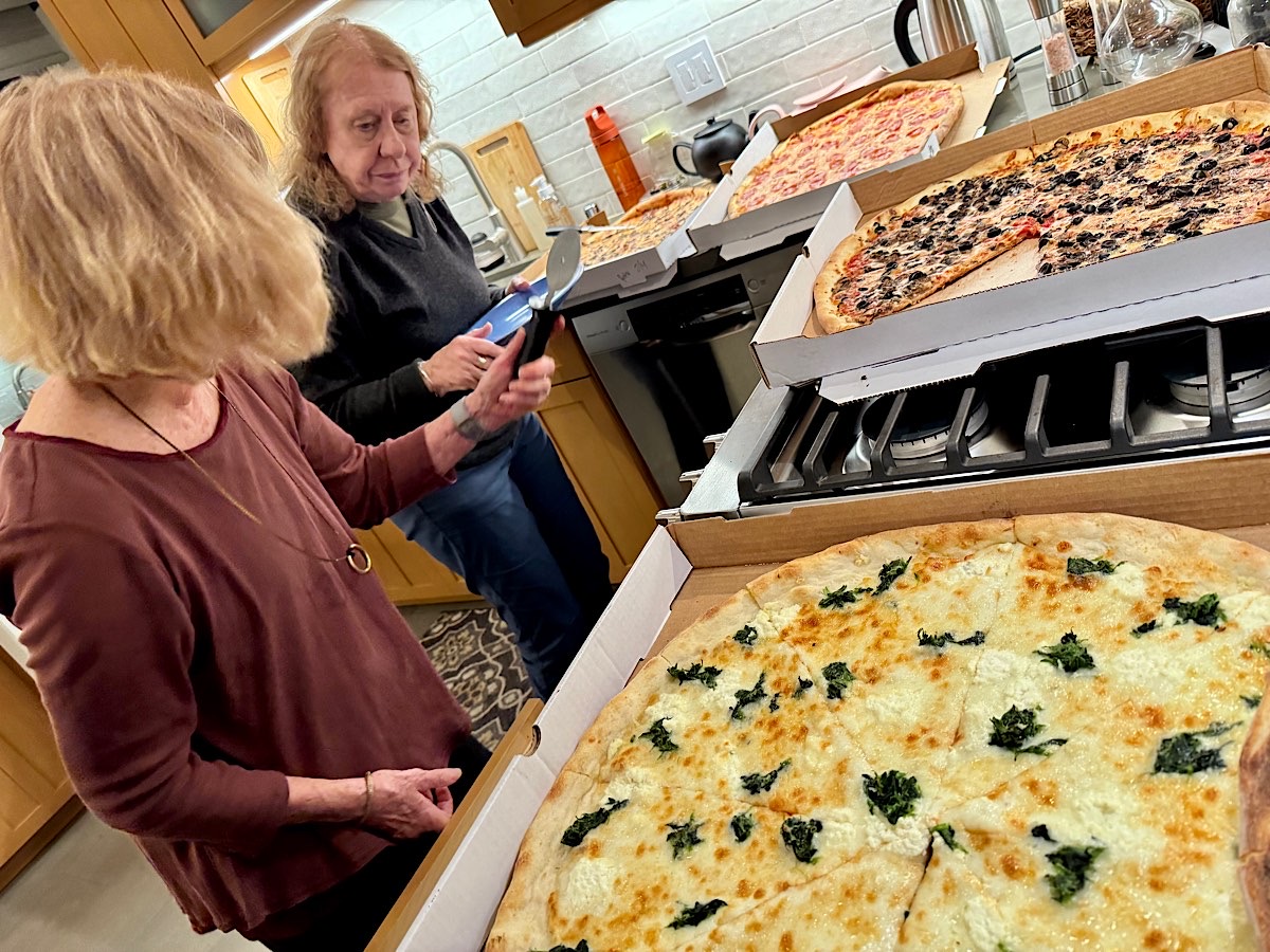 We had dinner Saturday night with Meda’s sisters and a few of our old friends. I think we may have over-ordered on the pizza front!! But oh, it was good pizza!