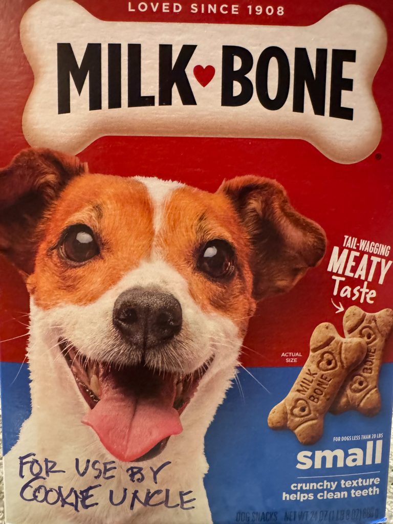 I’ve reached out to those I thought most likely to have left the Milk Bones. All deny responsibility.