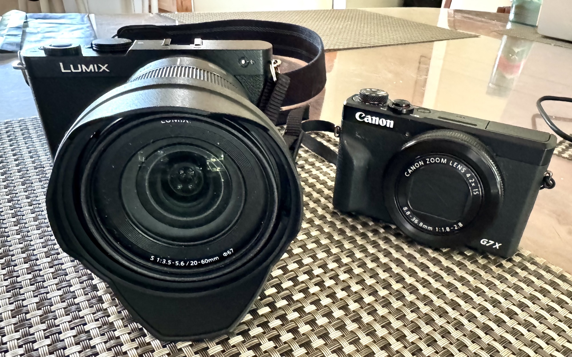 The five cameras include my little travel camera, a Canon G7xiii, and the Christmas gift to myself, the new Lumix S9, shown here.