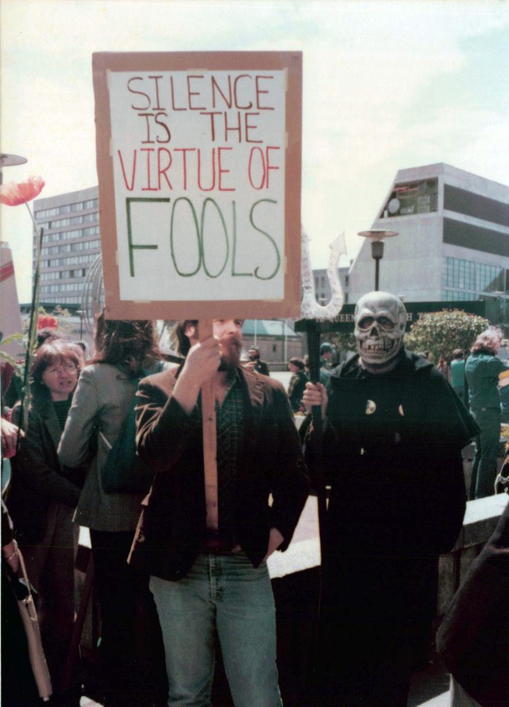 Indeed the sign is perfect. We are fools to be silent about the destruction of our Constitution, Nation, Planet regardless of which party or nation. They all play a role of greed.