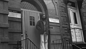 Meda and I are shown on the steps of a Friends Meeting House. It’s on an urban street, but neither of us recall where this was.