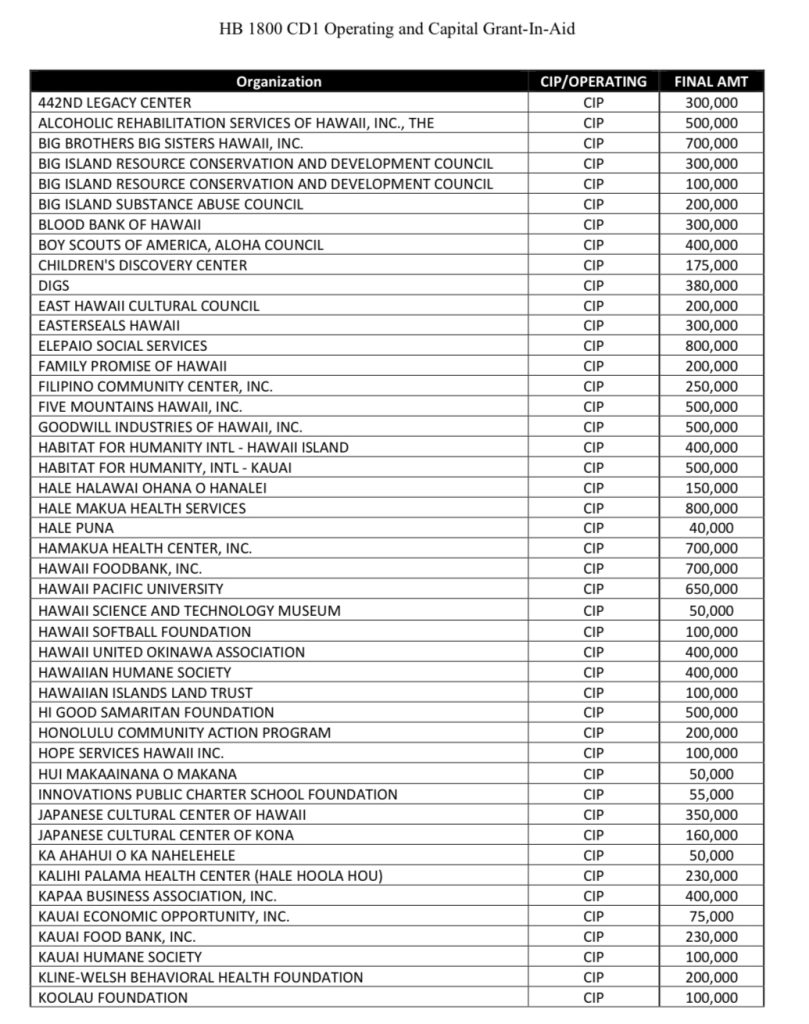 Here’s page 1 of the 4-page list of grant-in-aid recipients, just to provide a sense of the bill’s broad impact.