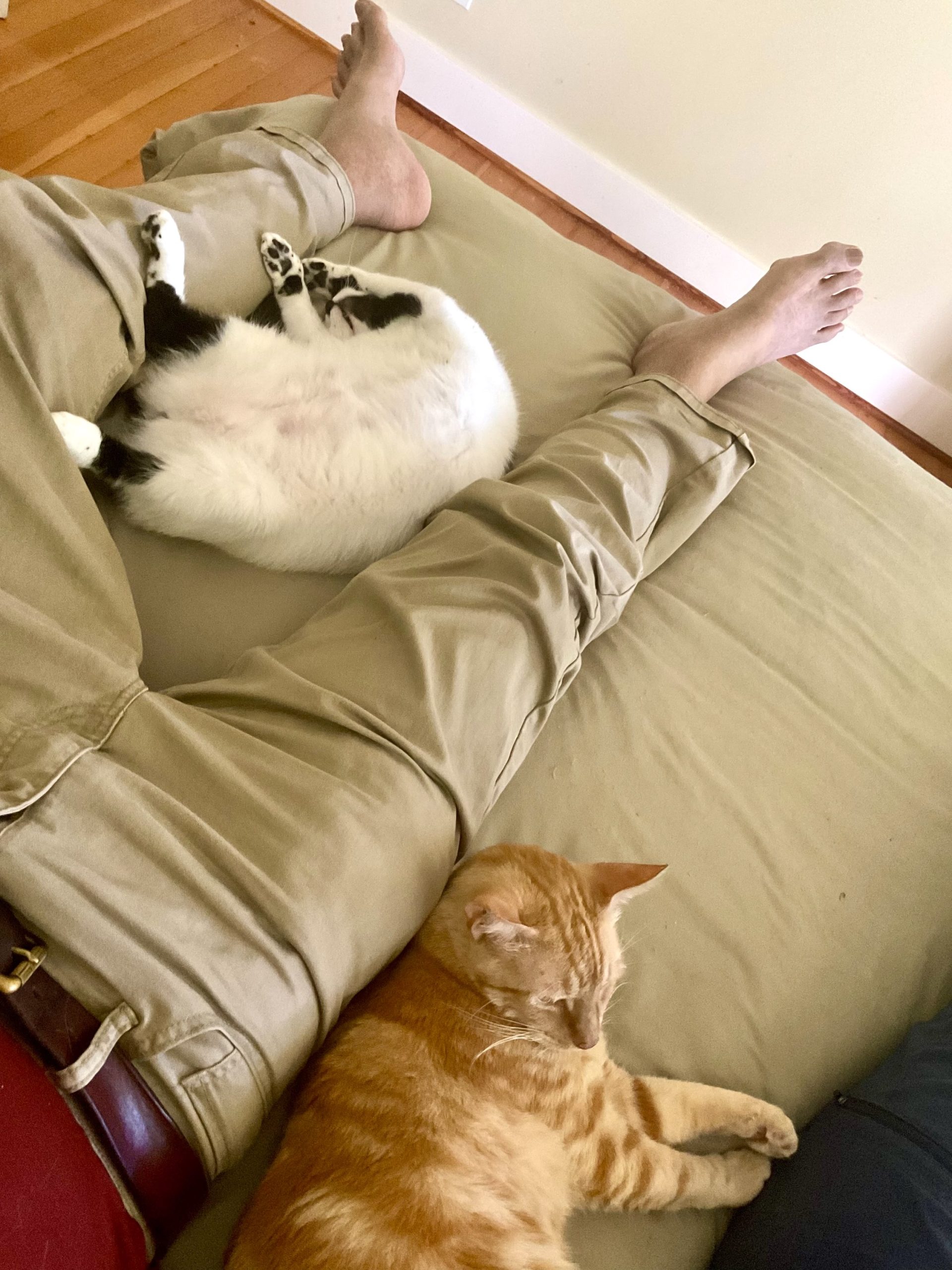 Sometimes Ms. Kali will be there as well. Her favored spot in splayed out on Meda, where she will stay for hours until manually displaced.
