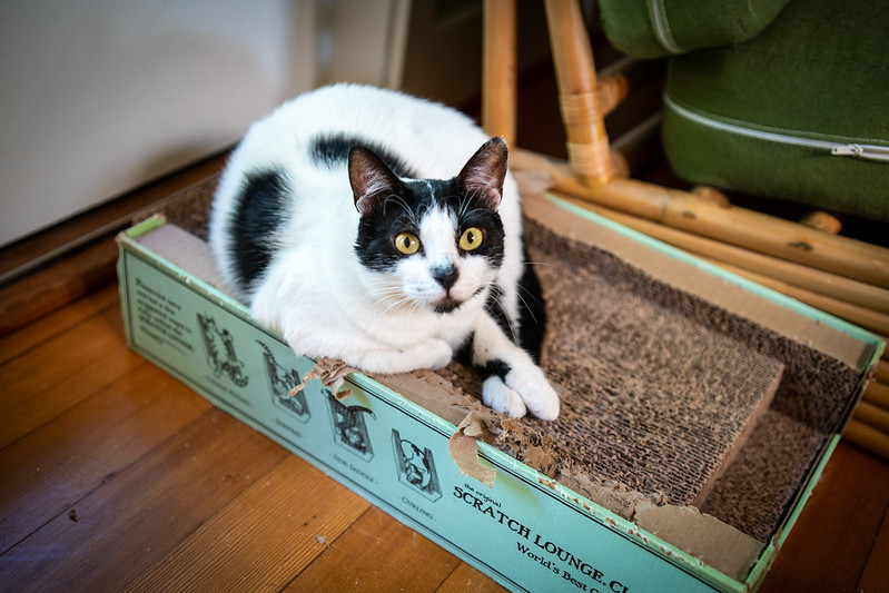 It rivals the Scratch Lounge as the most popular thing in the house. I realize that previously Kiko could usually be found napping on the lounge. This week, she’s moved her naps to the box. That’s a huge change.