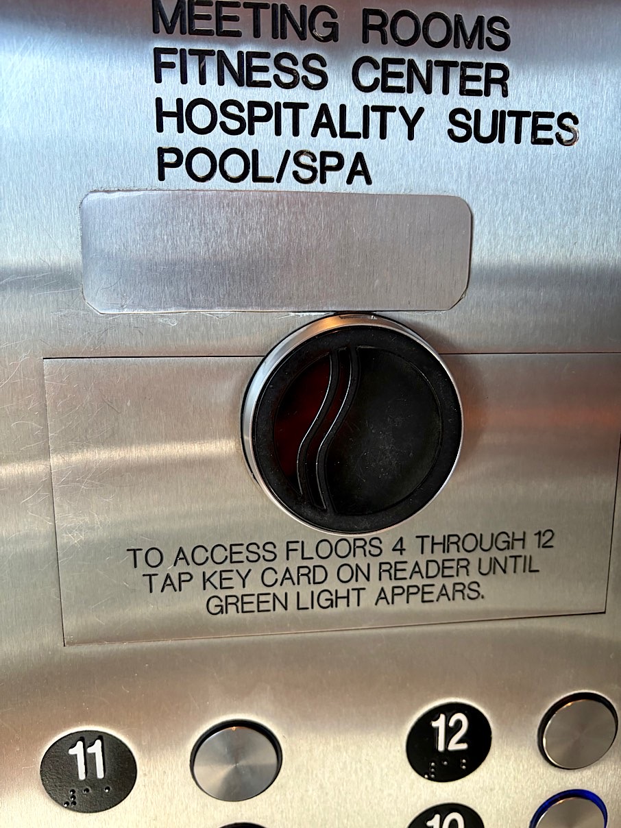 And then there is the security system in the hotel elevators, which are located in a hallway off the lobby just inside the main entrance to the hotel.