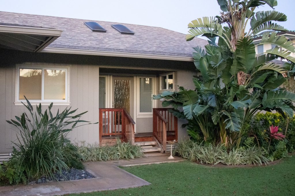And here’s the house at it looks today. The large bird of paradise plant is still there outside the front door.