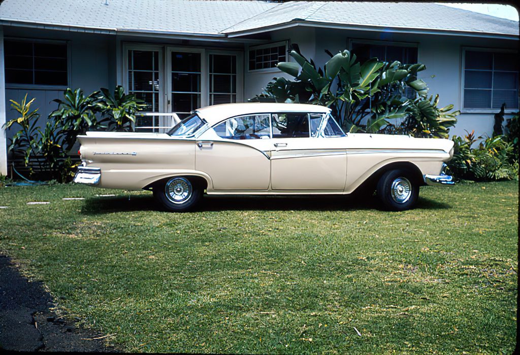 I believe this was probably the day he took possession of this new Ford Fairlane and brought it home for the first time. I think it was a 1957 model, but could be wrong. I was too young to drive, so I just had to look. And, of course, I was assigned to wash it now and then.