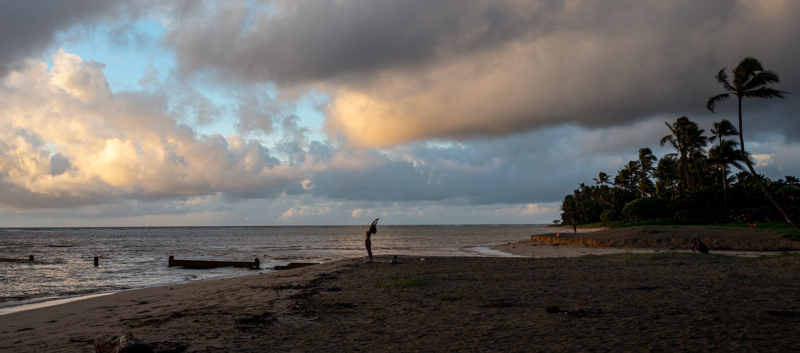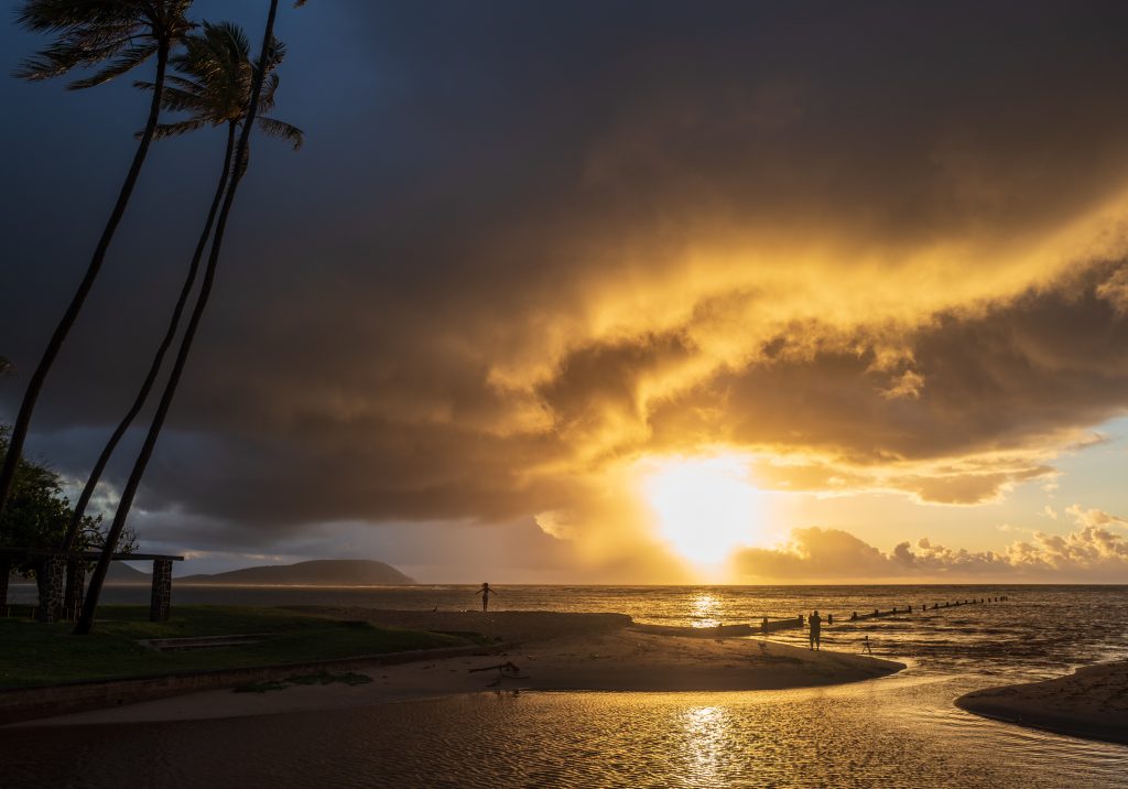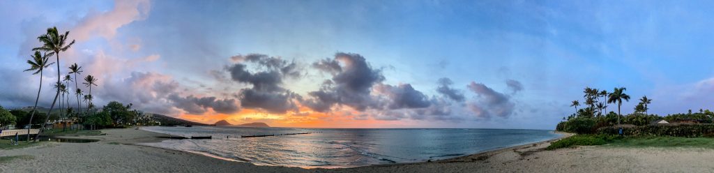 At Waialae Beach Park, 6:51 am Tuesday. Sunrise was 16 minutes away. And within the next 10 minutes, the colors faded to gray. But for a few minutes, it was awesome.