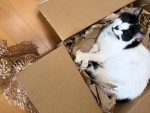 The Amazon box and the scratch lounge both retain their appeal. I had to flip over the cardboard insert after I realized the top had been thoroughly ripped up. And last week’s infusion of new packing paper in the Amazon box has been carefully processed and reducted to bedding once again.