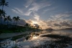 The shot of the morning. Bbeni had been back at the other end of the beach socializing with several other small dogs before finally heading home with his people. Meda and I were headed in the same direction. As we reach Waialae Beach Park, a big dog, unleashed, trotted over to check Bbeni out.
