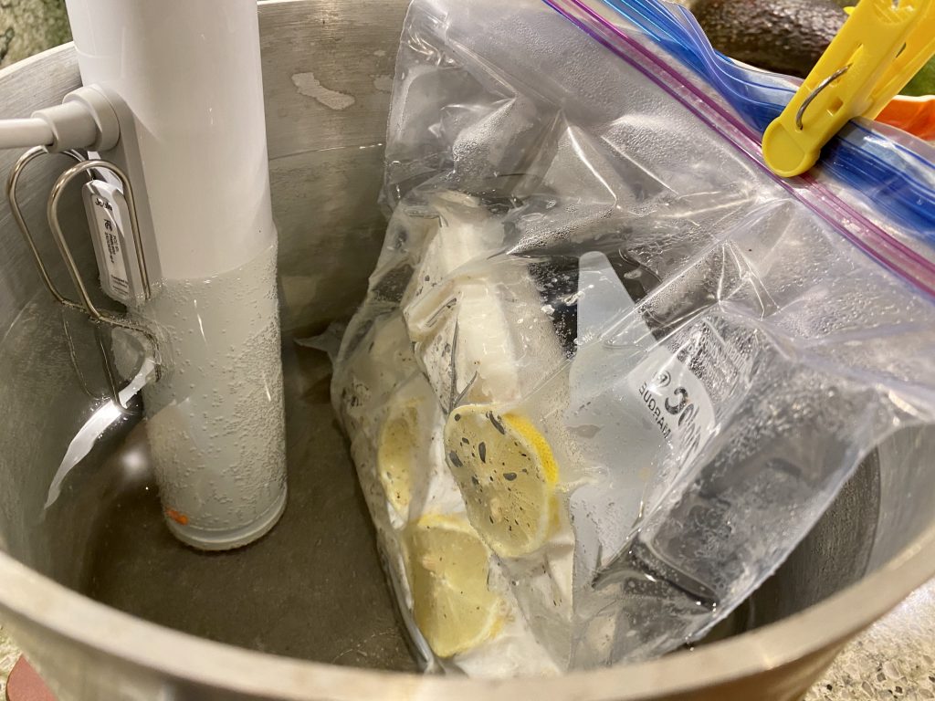 The initial problem I ran into is that recipes differed on the ideal target temperature. Recommendations ranged from 122 degrees to 130 or higher. And after choosing a basic temperature, it’s necessary to make adjustments for the thickness of the fish and whether it’s frozen or fresh.