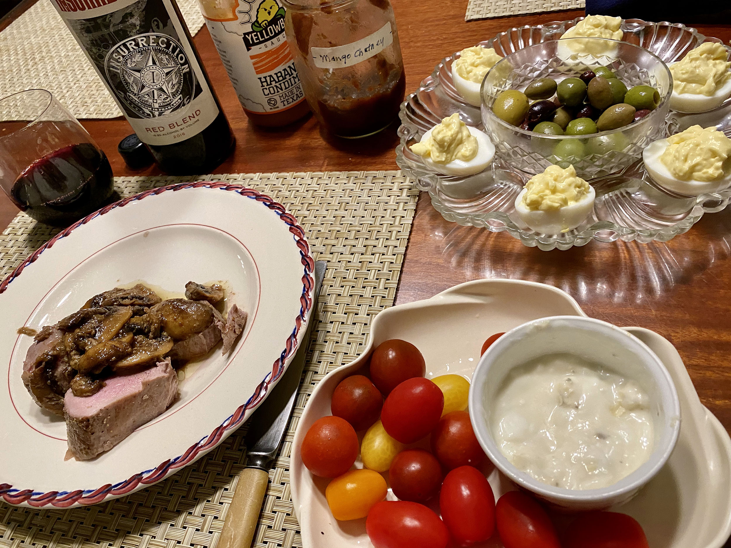 I decided to aim for what I thought would be something in the middle of time and temperature. I set the water for 126 degrees (Fahrenheit), and a cooking time of about 80 minutes. With those decisions made, it was time for a glass of wine while Meda prepared a plate of heirloom tomatoes. Meanwhile, the day’s splurge, a beautiful but expensive artichoke from Whole Foods, went into a pot to simmer for an hour.