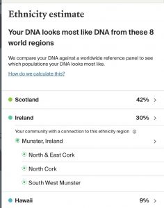 Later, again with her encouragement, I did additional testing of so-called “autosomal” DNA, which is inherited from both parents.