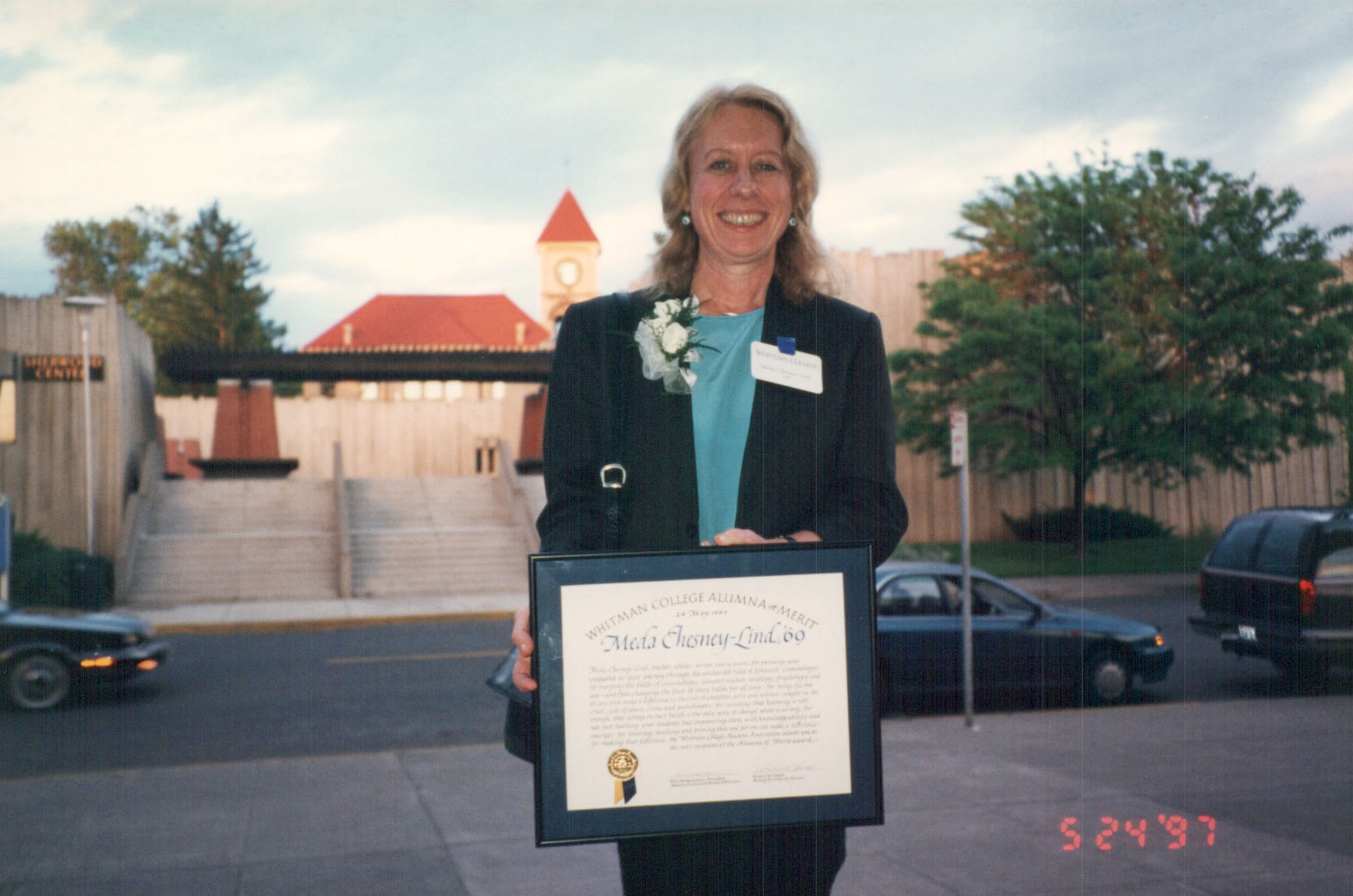 In May 1997, Meda and I flew to Portland, Oregon, spent a night or two, and then rented a car and drove along the Columbia River and up to Walla Walla, Washington, where Meda was presented the “Alumna of Merit” award from Whitman College. After several days in Walla Walla, we drove back to Portland and spent a bit more time before flying home.