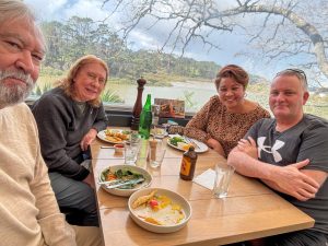 Yesterday we took a 30-minute Uber ride and met them at The Landing restaurant in Riverhead, West Auckland, not far from their current home in Kumeu, which turns out to be the home of several vineyards.