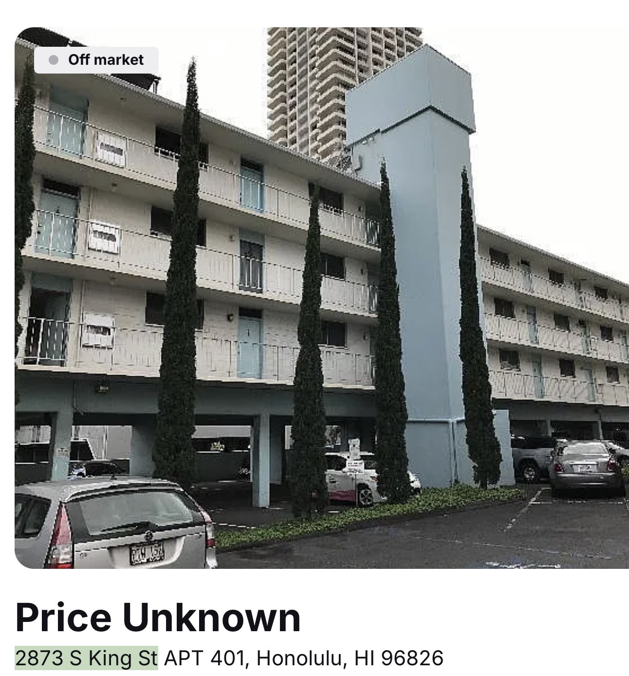 • The low-rise building behind the construction site is quite distinctive. It appears to be the apartment building at 2873 S King St. There is a smaller building that fronts King Street, and 2873 is right behind it, just off of church lane.